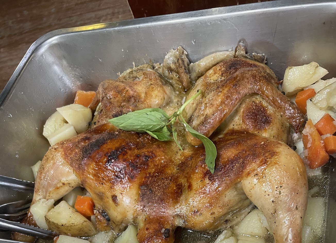 一隻全雞不小,裡頭還有好多馬鈴薯跟紅蘿蔔