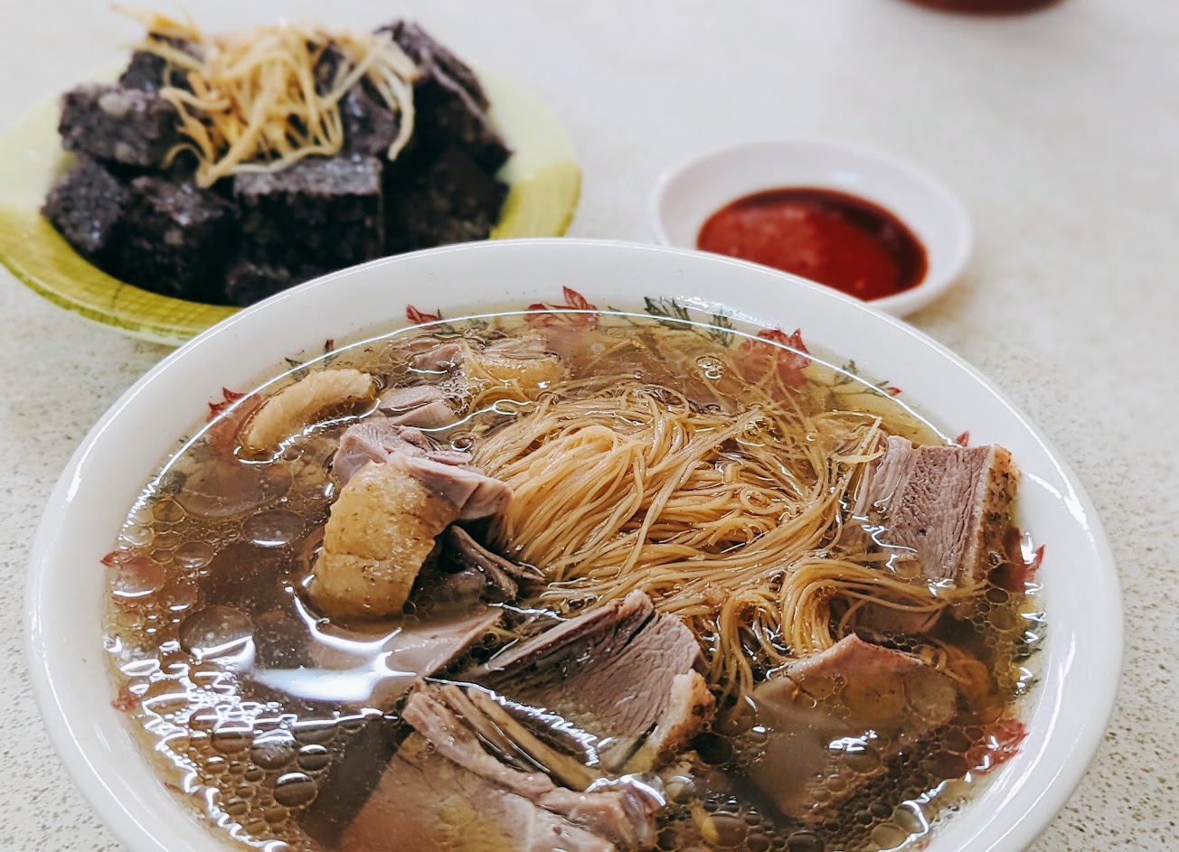 年初三到,內用約排隊半小時,但大家都按照順序排,不會顯得混亂。過年只提供當歸鴨肉麵線,豬血,鴨肉盤,當中鴨肉盤的肉質最嫩好吃,相對當歸鴨肉麵線的鴨肉則比較材一些,但配上湯一起吃也是可以。豬血則比較硬,沒吃到也不可惜。