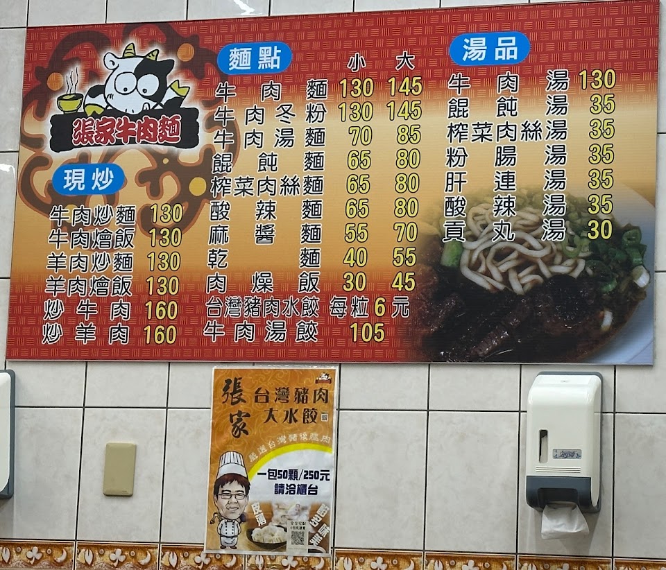 個人實際吃過的看法,牛肉麵的肉有些許個人無法接受的味道,麵條不錯,湯頭尚可,整體味道不到位。一碗大碗牛肉麵要價145元。不會去吃第二次的店家。