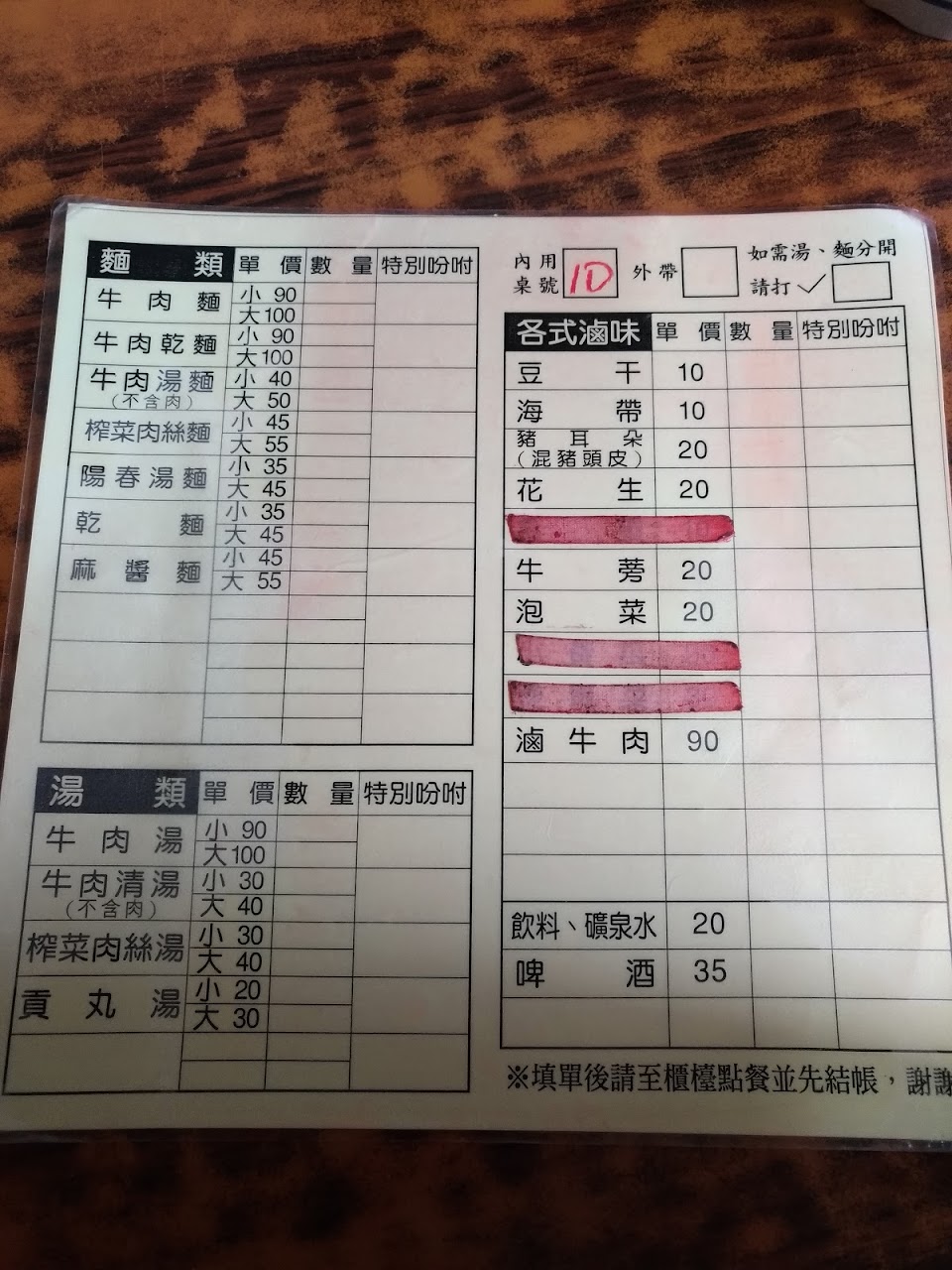 看著評價來用餐,點了小碗牛肉麵、海帶、豬耳朵,湯頭很順口,涼涼的秋天來碗熱呼呼的牛肉麵真的很舒服,如果小菜有在川燙一下就更完美了?