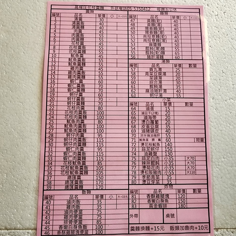 2024最新在地推薦餐廳的菜單_高稼庄花枝羹麵的菜單、圖片