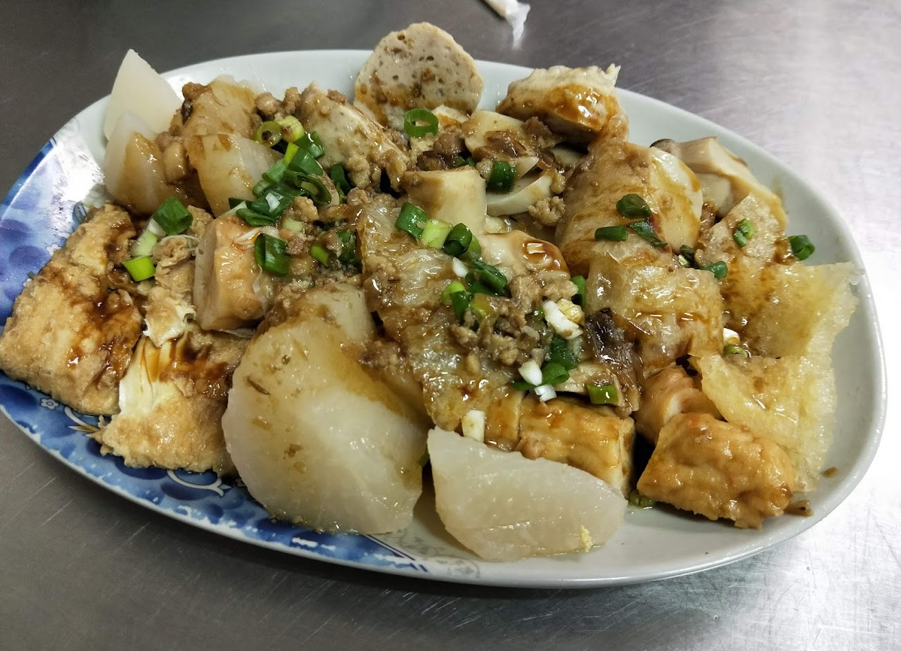 價格平實便宜,使用小木匙吃碗粿,相當有古早味,搭配醬料真的很入味,關東煮也很便宜又好吃,淋上店家的肉燥醬汁,整個大加分。