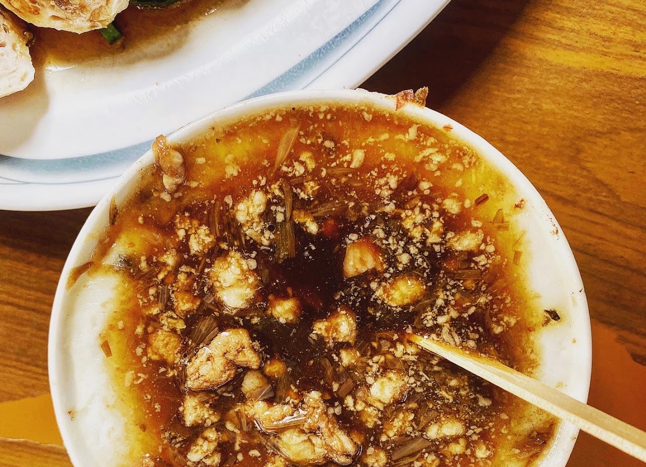 碗粿入口綿密接續著融化,伴藏著有嚼勁的瘦肉,好吃!