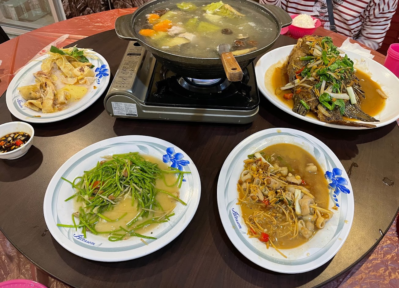 今天偶然找到這家餐廳 抱著嘗試的心態及看到不錯的google評價來點餐 總共點五道菜 炒時蔬青菜(水連): 炒起來爽口清脆 又大盤 薑絲大腸: 平價又多 十分入味 油雞: 嫩且甜 也是很好吃 苦瓜雞湯: 這道是看到網友推薦的 肉多料多 喝了會回甘爽口 紅燒吳郭魚: 魚池在外頭直接看得見 大尾且肉感綿密帶點甜味 相當下飯 可說是此趟首選! 其他: 白飯吃到飽 可能因疫情而用塑膠碗(同行家人擔心裝熱湯) 餐廳環境乾淨 廁所亦同 還可以到附近散散步 結語: 此趟意外發現一枚可收藏的名單! 便宜又大碗 品質也可 雖然位置很隱密 但還會再來的!!!