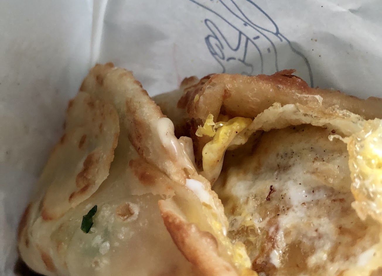 蔥油餅 價格正常 但餅皮非常彈有嚼勁 加蛋加起士的爽度極高 還能有好吃的辣油提味唷!