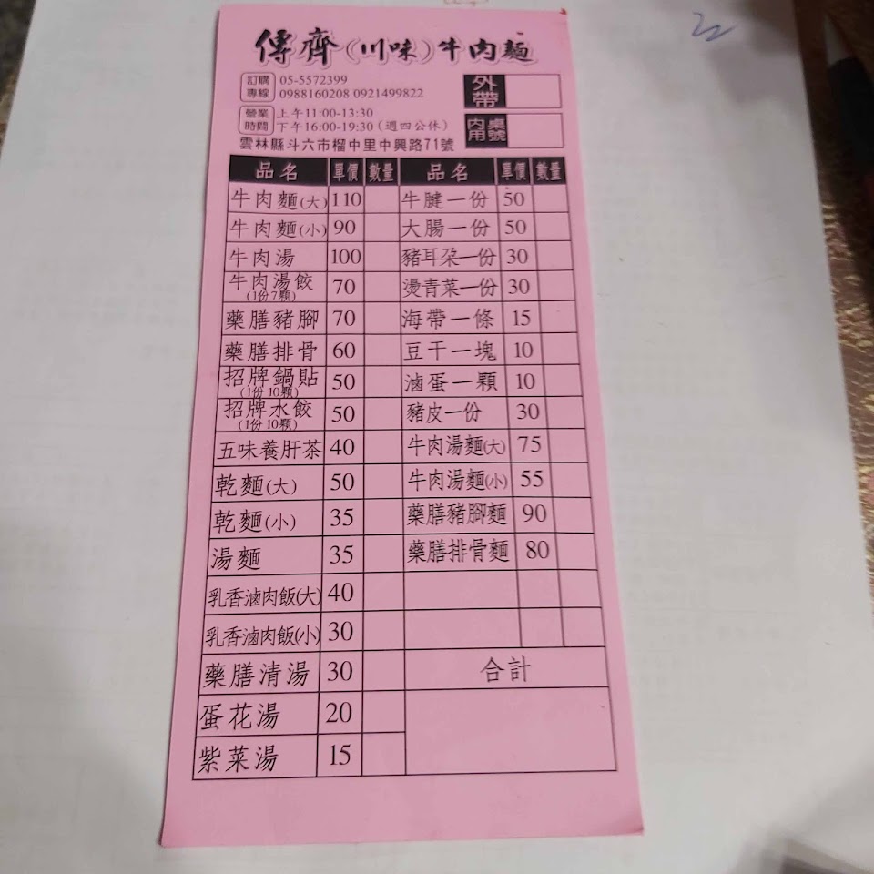 2024最新在地推薦餐廳的菜單_傳齊(川味牛肉麵)的菜單、圖片