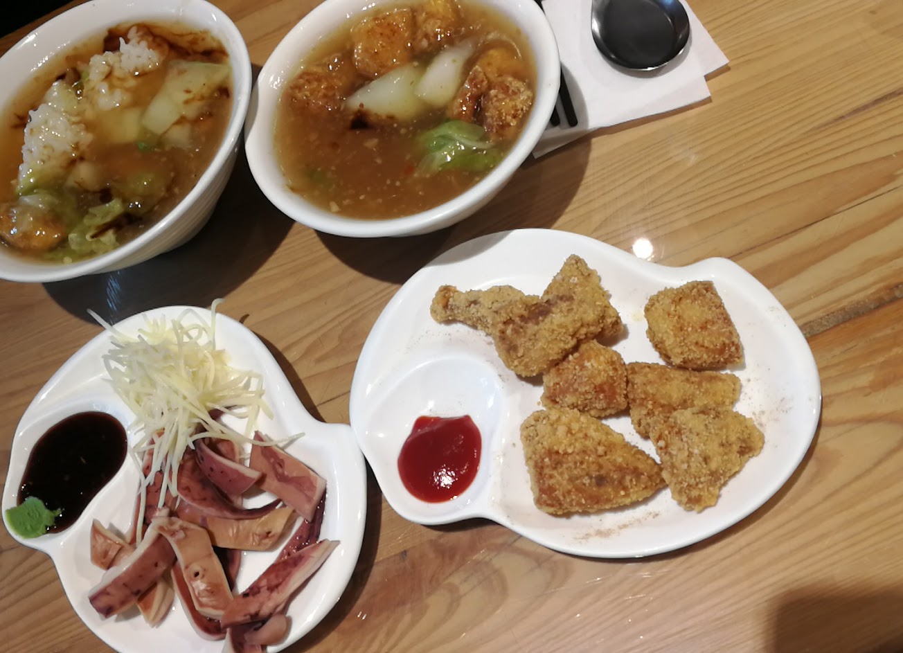 店內用餐環境蠻好的!有裝潢 有氛圍 店員送餐來時夾子會夾在碗盤上 食物就會沾染到!希望店家改善!!衛生疑慮問題 排骨酥羹湯 60$ 份量不大碗 湯頭味道還行 排骨酥有香 可惜的是cp值感覺尚未抵達一碗60的價格 湯裡面就白菜跟排骨酥而已 沒其他配料了 土魠魚羹湯 60$ 土魠魚塊吃起來沒有排骨酥這麼香 稍嫌一般 用餐期間店內人潮還算多!