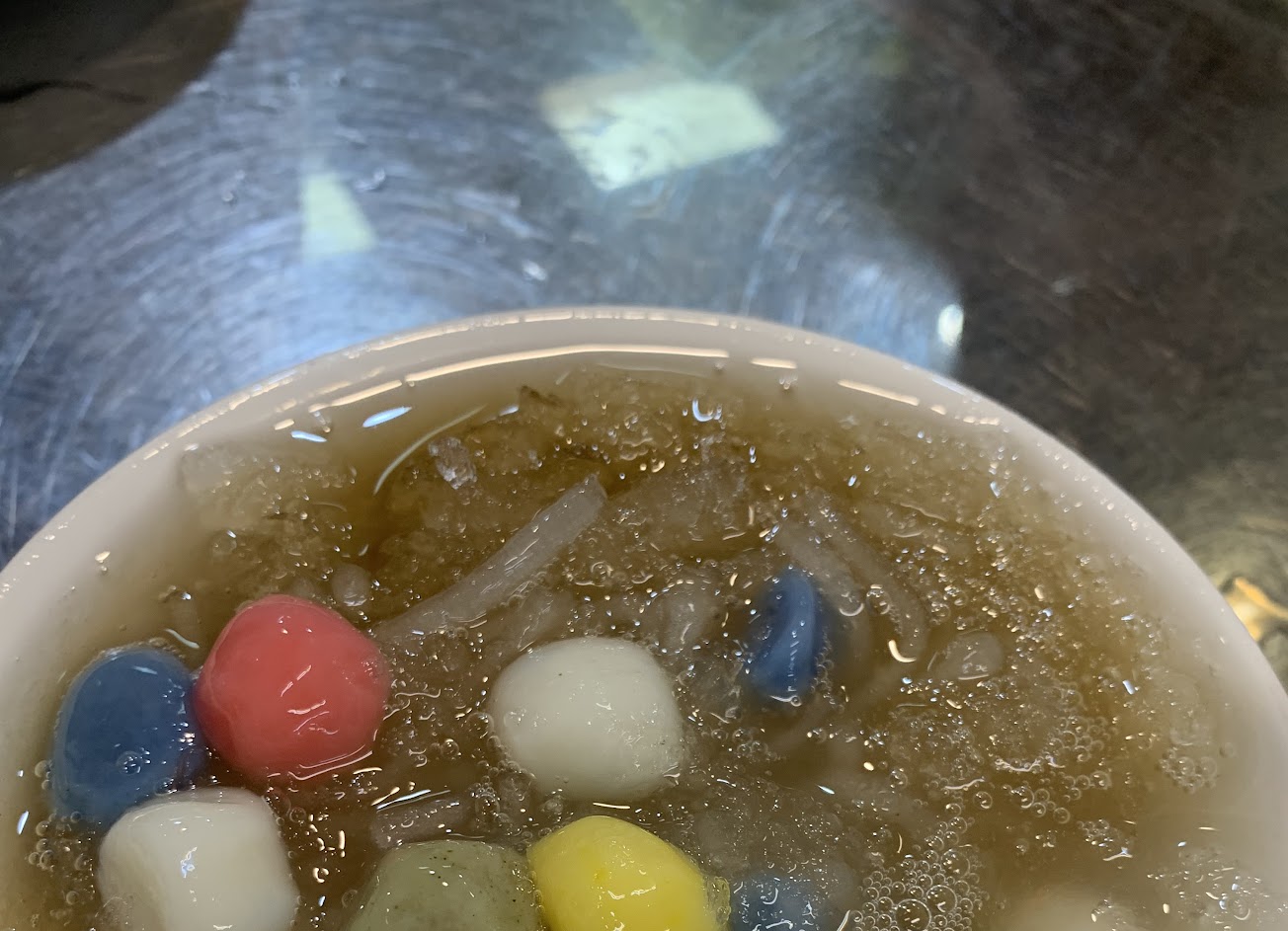 湯圓粉條冰,湯圓是五顏六色的超可愛哈哈哈,粉條超級超級Q,我吃到後面一直努力在咬,吃到心累。冰也融化的超級快馬上變成湯圓粉條湯