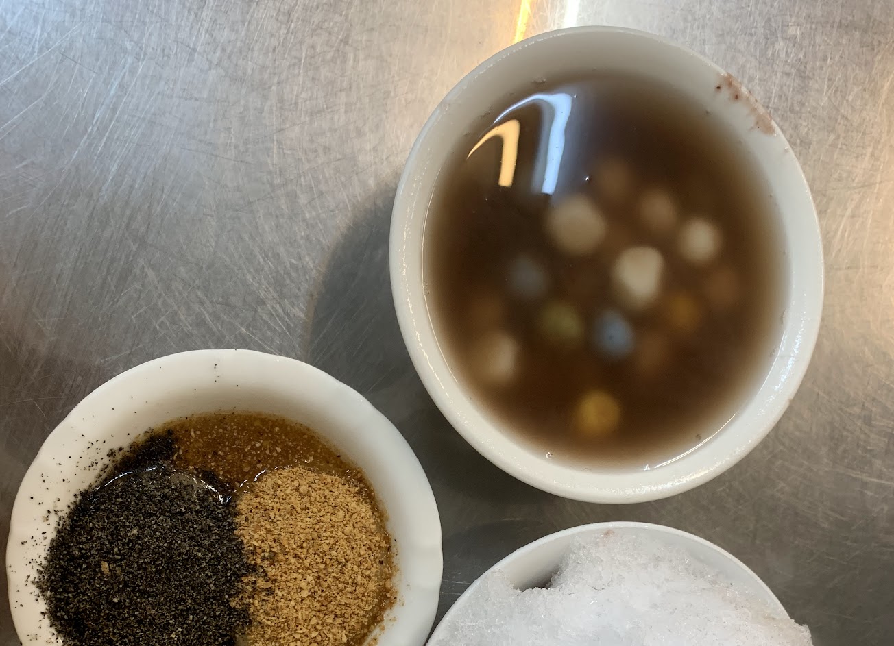 好吃的湯圓冰加上ㄧ組芝麻花生麻糬。非常對味。? …
