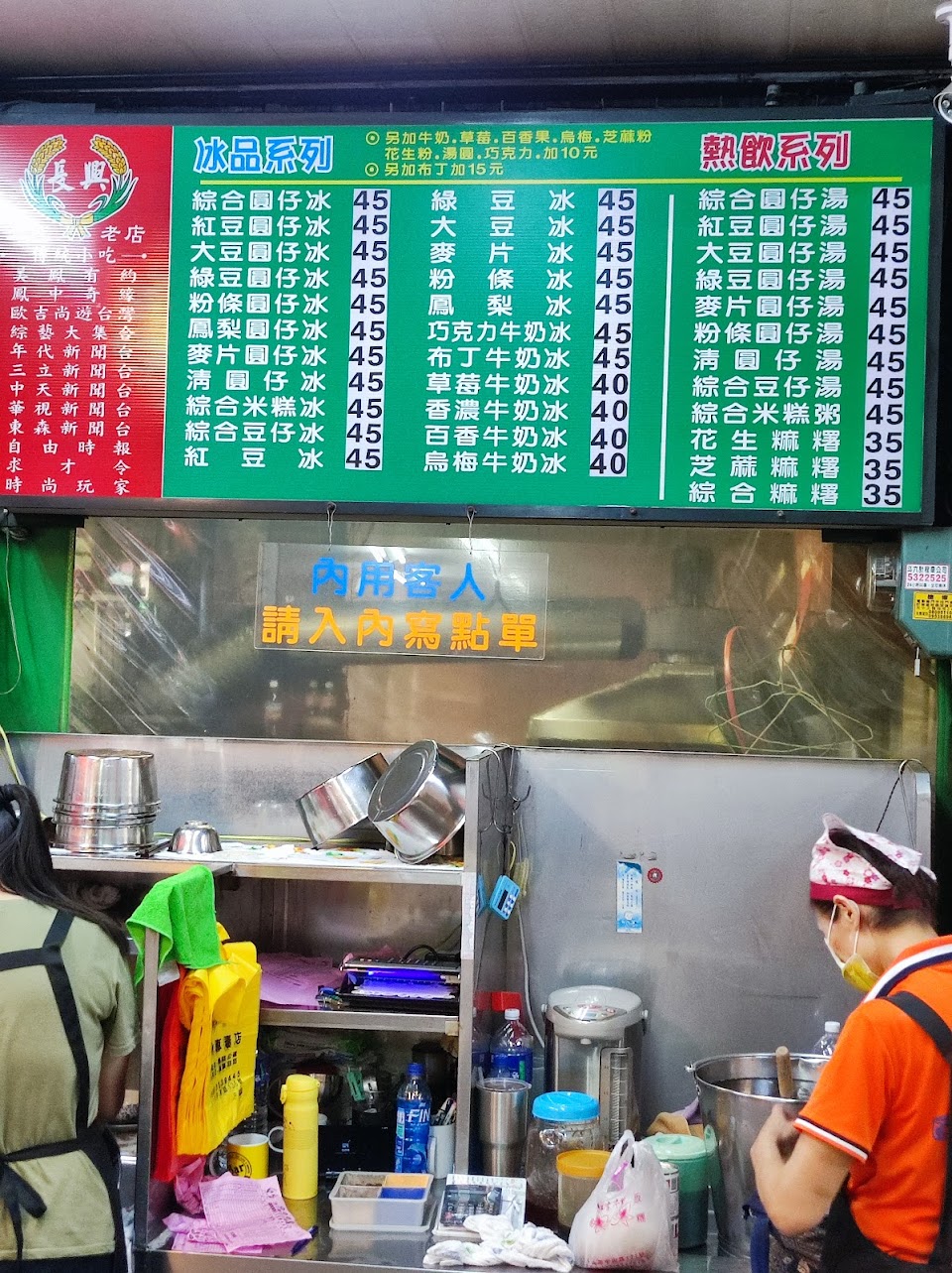 雖然內用隊伍排得很長,不過翻桌率頗快,沒有排很久,邊排可以邊看老闆快手填滿每一碗挫冰配料,還可看到煮湯圓跟麻糬,有療癒感^^