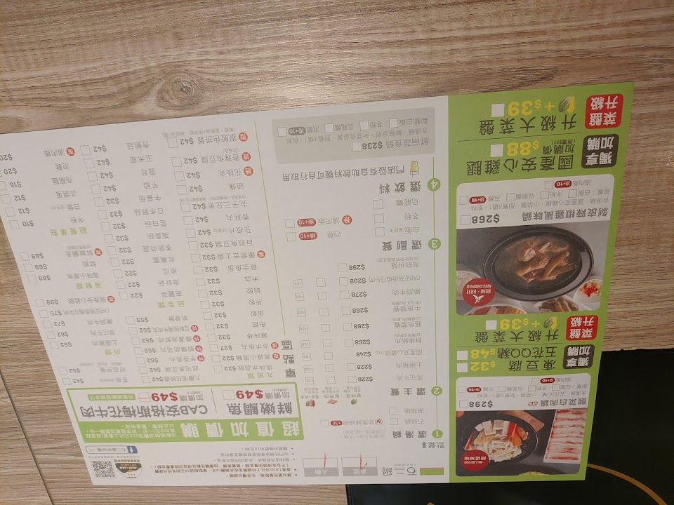 目前為線上電子點餐的方式,在到櫃檯進行結帳,記得打開頁面一一跟店員確認,因為發現其實有被點錯,現場餐點來了之後也有反應,但店員覺得是我們這樣點,後來回家看電子點餐結果與結帳紙本印出來的確實有落差。自助式取用餐具(餐具、碗有時要注意,清潔不是那麼乾淨)、醬料,還有檸檬冬瓜冰沙、黑豆茶暢飲。