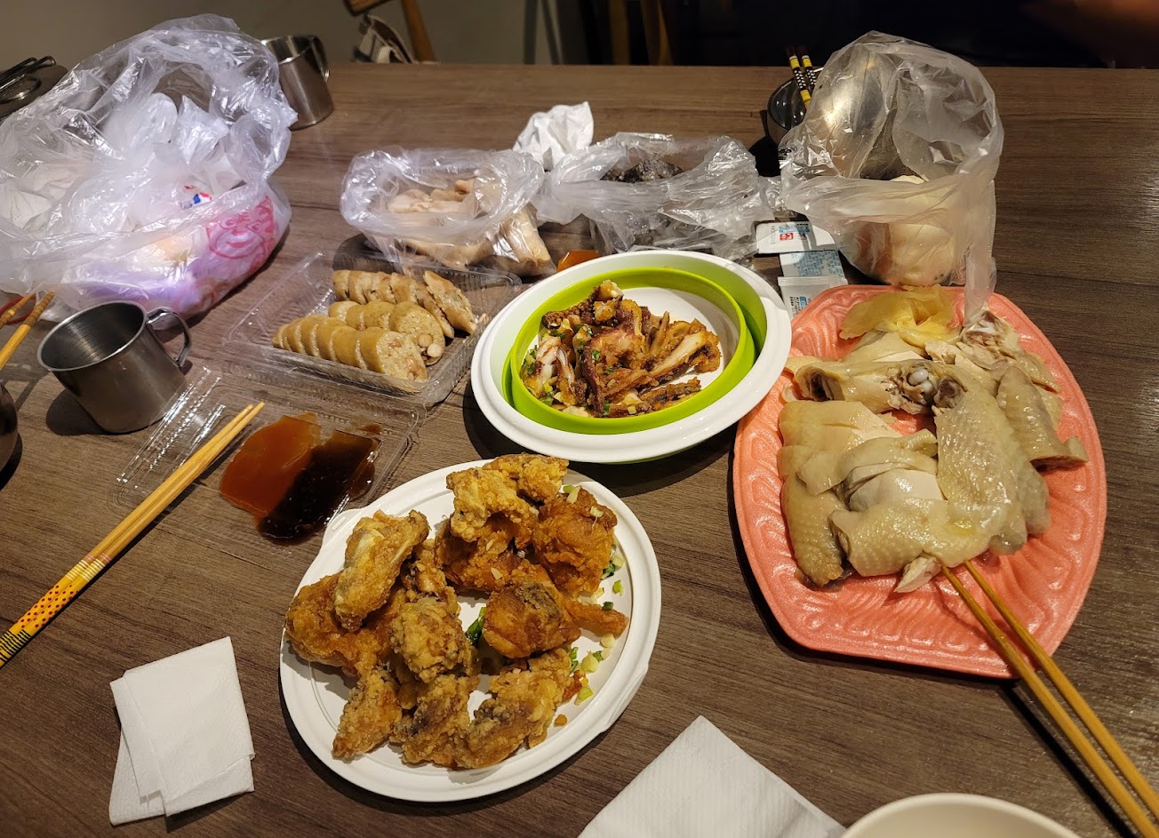 吃喝一大堆,什麼都有,生食,熟食,冷凍食品,跟生鮮魚,豬肉……等等,熟食很多間都蠻好吃的,買的大包小包回家吃的好開心? …