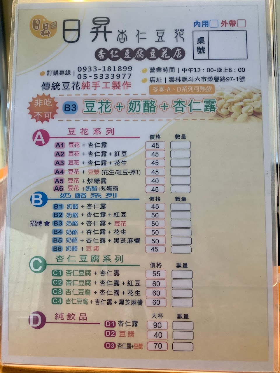 2024最新在地推薦餐廳的菜單_日昇杏仁豆花的菜單、圖片