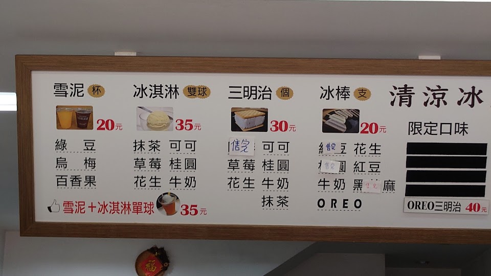 2024最新在地推薦餐廳的菜單_溝垻清涼冰店 冰餅 雪泥冰 冰淇淋 三明治冰餅 冰棒的菜單、圖片
