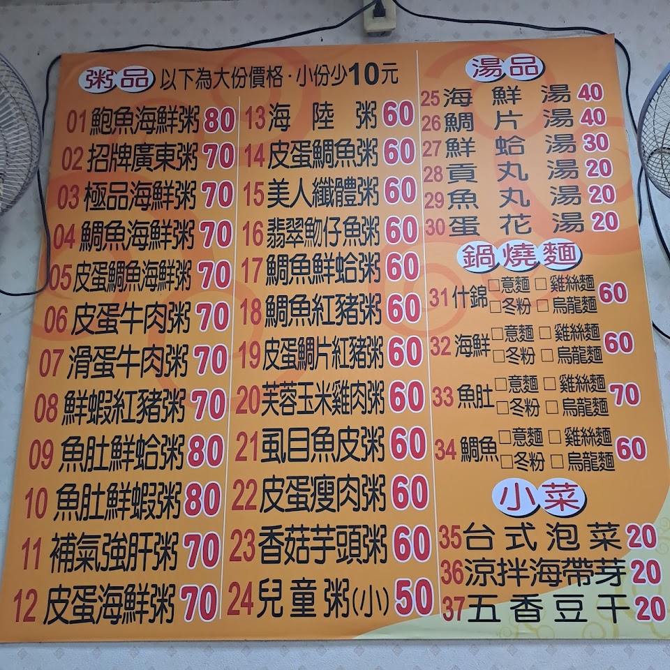 粥很大碗不是很水的 料很多 整體口味很好吃便宜 cp值很高 很推的? 餐點:5 服務:5 氣氛:5