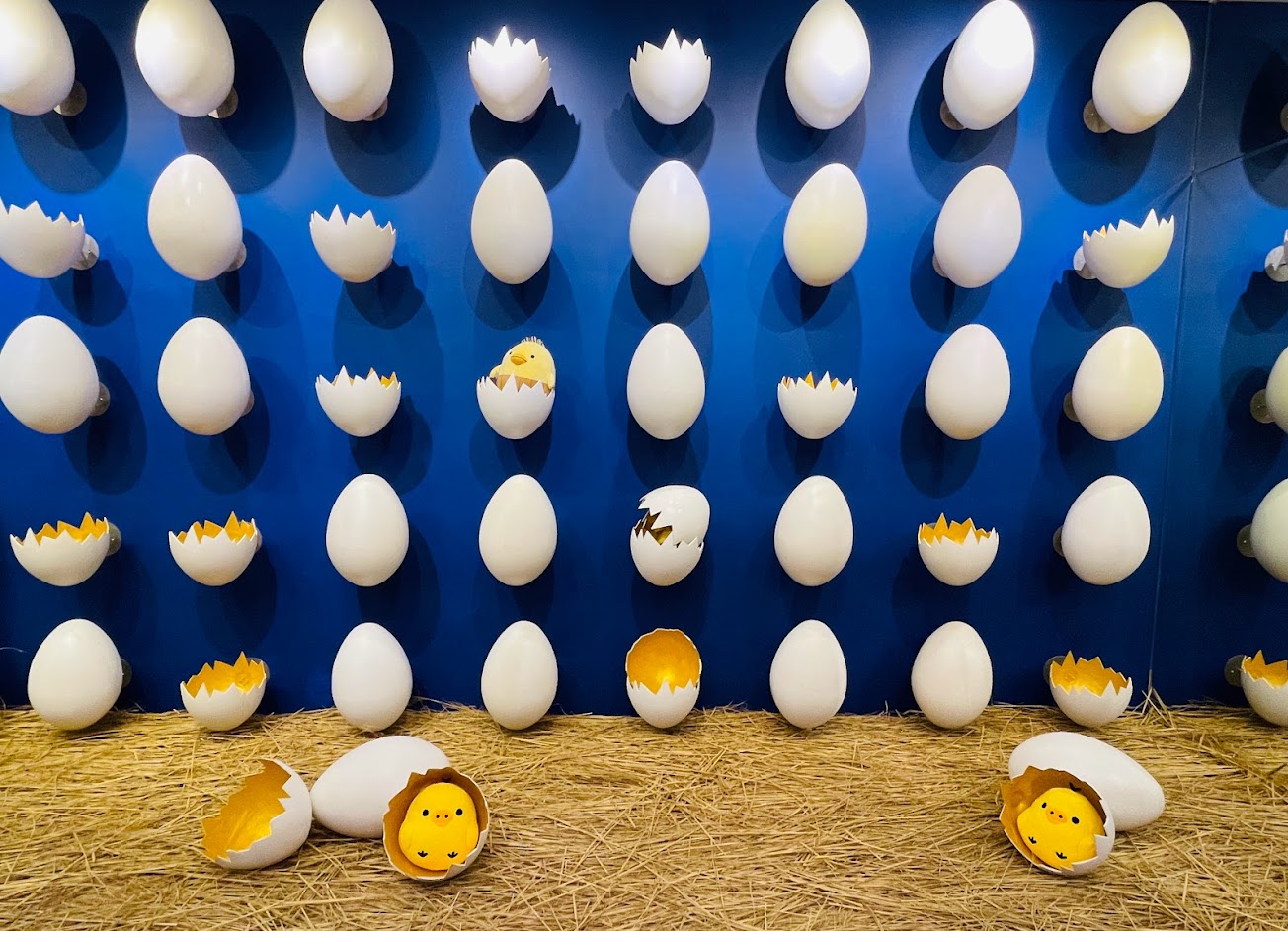 一整面牆展示一堆蛋殼,滿有趣。牆上也有千層甜點世界地圖、什麼是千層蛋糕及蛋皮的由來等等資訊,長知識了,也是我最愛拍的東西。