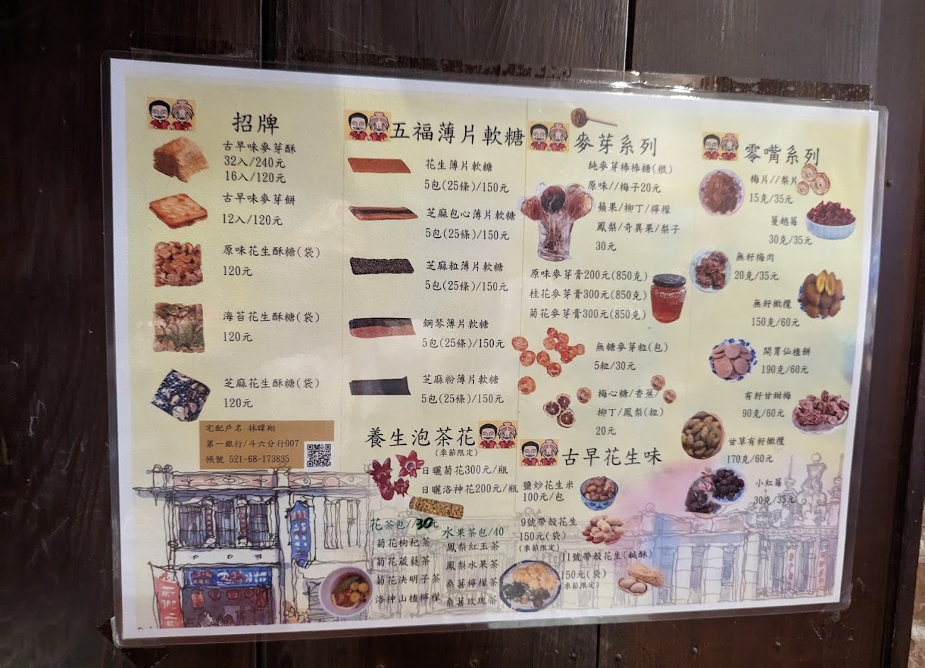門口有賣店家自製花生酥、麥芽餅、水果乾麥芽糖、花生糖等古早味甜食,很多人吃完冰順便帶幾盒走,相信大人小孩都會喜歡。