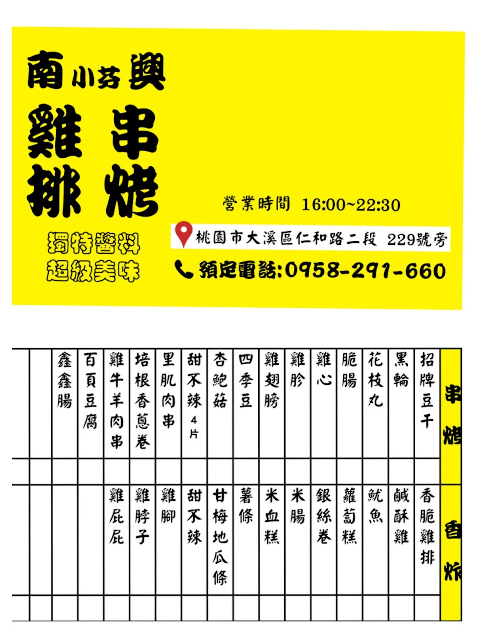 2024最新在地推薦餐廳的菜單_串烤雞排的菜單、圖片