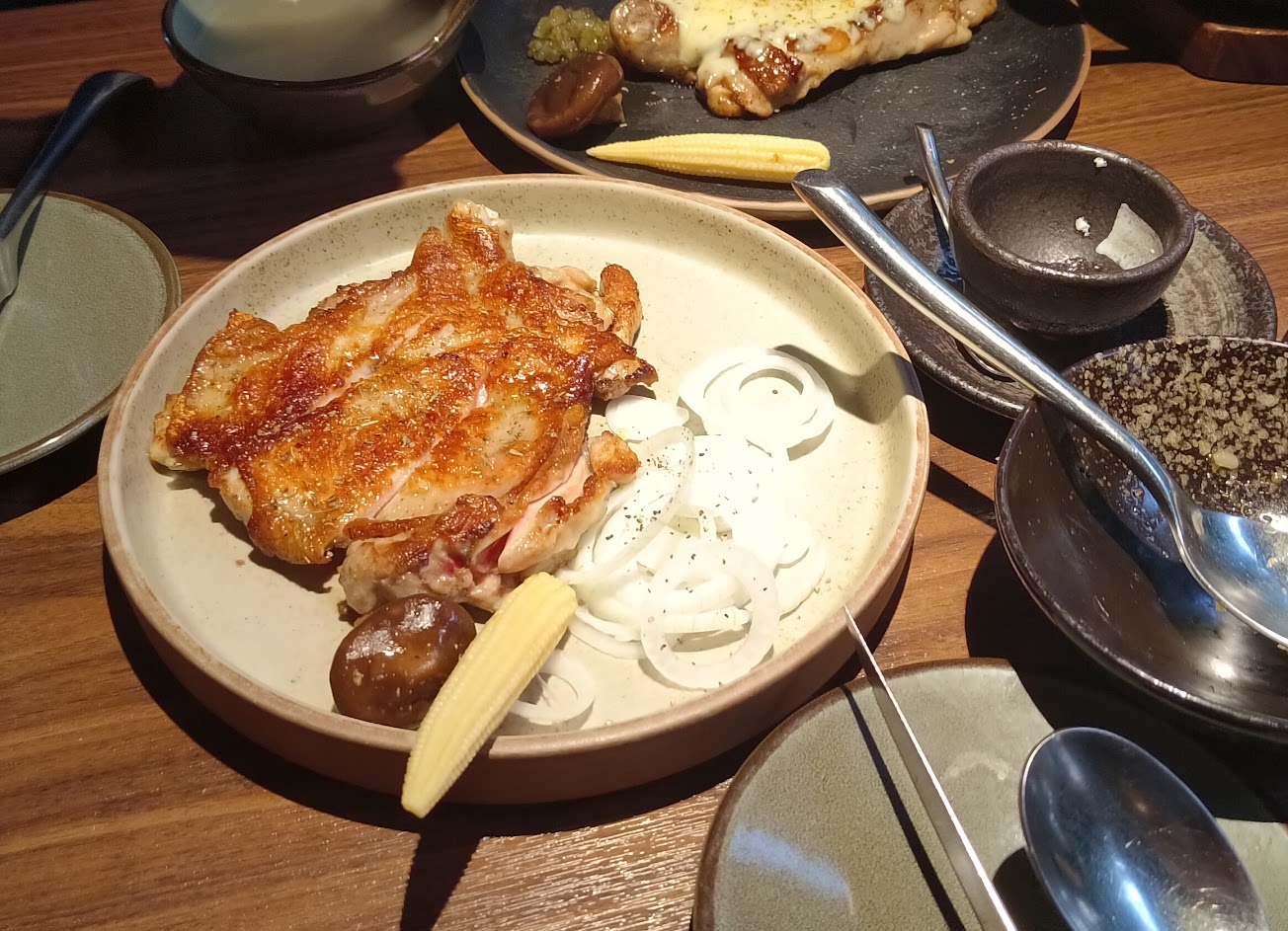 朋友推薦特別來嚐鮮,點了豚肉與雞肉,服務員建議豚肉先吃原味,口感很鮮嫩。茶碗蒸入口有柴魚香味,口感滑嫩,胡麻沙拉料多,很特別添加梅片切小丁,吃起來爽口美味!