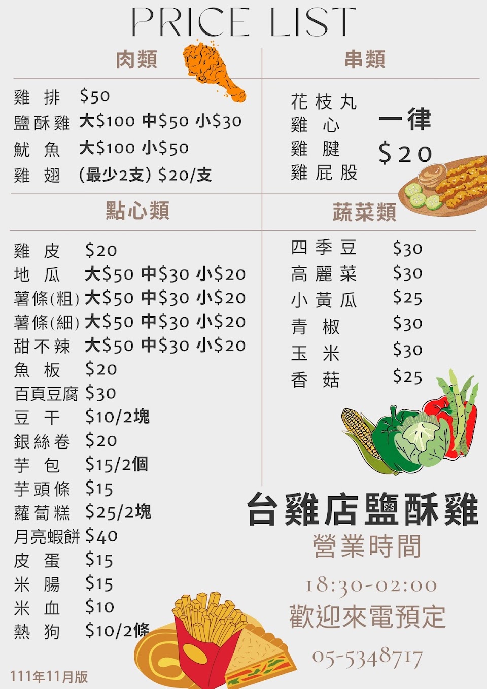 2024最新在地推薦餐廳的菜單_台雞店-鹽酥雞-斗六店的菜單、圖片