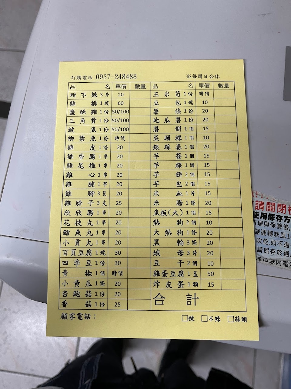 (下午、晚上)點心、宵夜的好去處 每日營業時間開始生意強強滾。 美味平價、份量十足! 口味依個人:原味(胡椒)、+蒜頭(香氣)+蒜頭+辣(鹹鹹香香辣辣)再加罐啤酒、飲料,美味100分。 食材新鮮度:上等,每天處理現炸 食材總類:上等,總類眾多挑選 價格:親民平價 份量:百元以上份量十足建議兩人以上食用。 停車:停車方便。 人員:老闆、老闆娘、老闆兒子(徵女友),待人親切、服務和善。 服務 外帶 餐點類型 其他 平均每人消費金額 $1-200 特殊餐點 地瓜、鵝母、雞腳 無障礙設施 行走方便、有人員協助