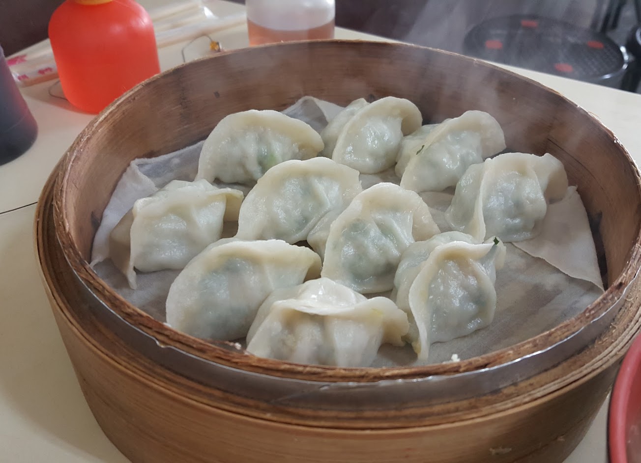 這裡的蒸餃口味不錯, 裡面除了韭菜以外 還有清脆的荸薺, 這裡還有蜆仔湯, 口味相當不錯