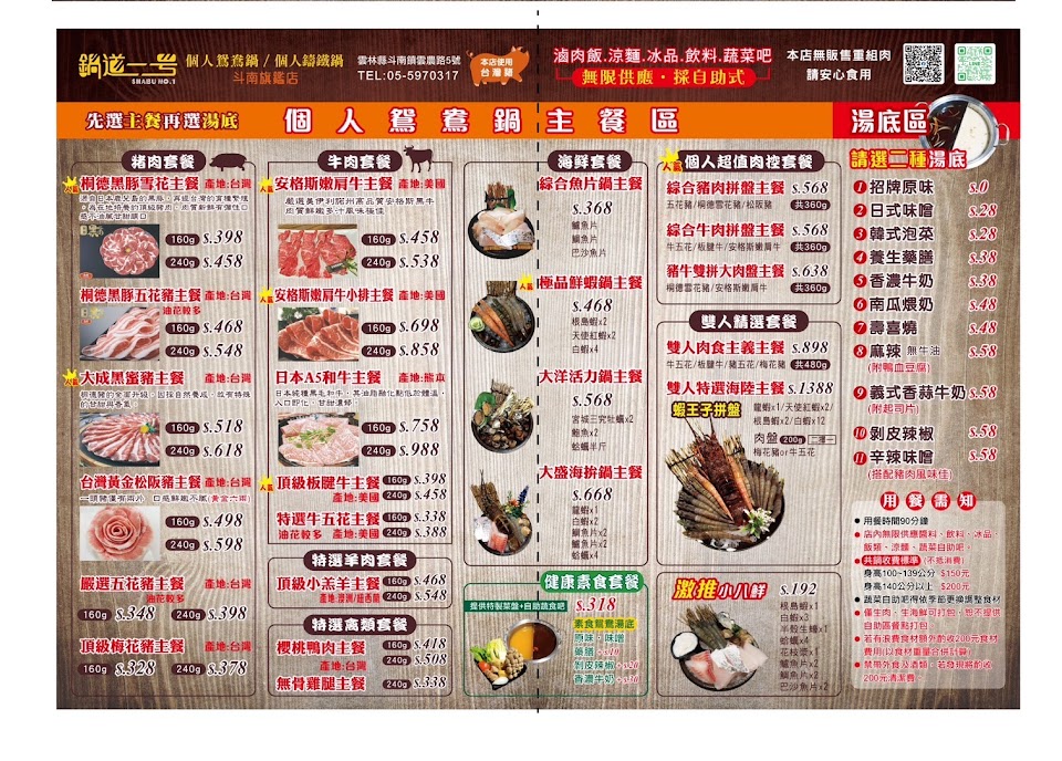 第一次有看到個人都是鴛鴦鍋的 也有涼麵滷肉飯吃到飽 餐點:4 服務:5 氣氛:5