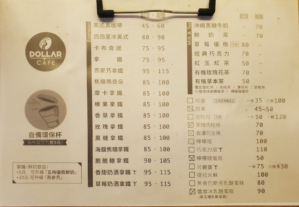 [豆樂咖啡 Dollar Cafe] / •巴斯克乳酪_$100 •小藝妓_$150 •花生奶油捲_$40 內用低消每人一杯飲品☕