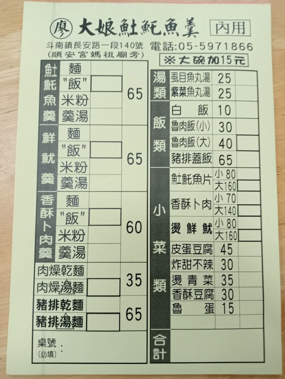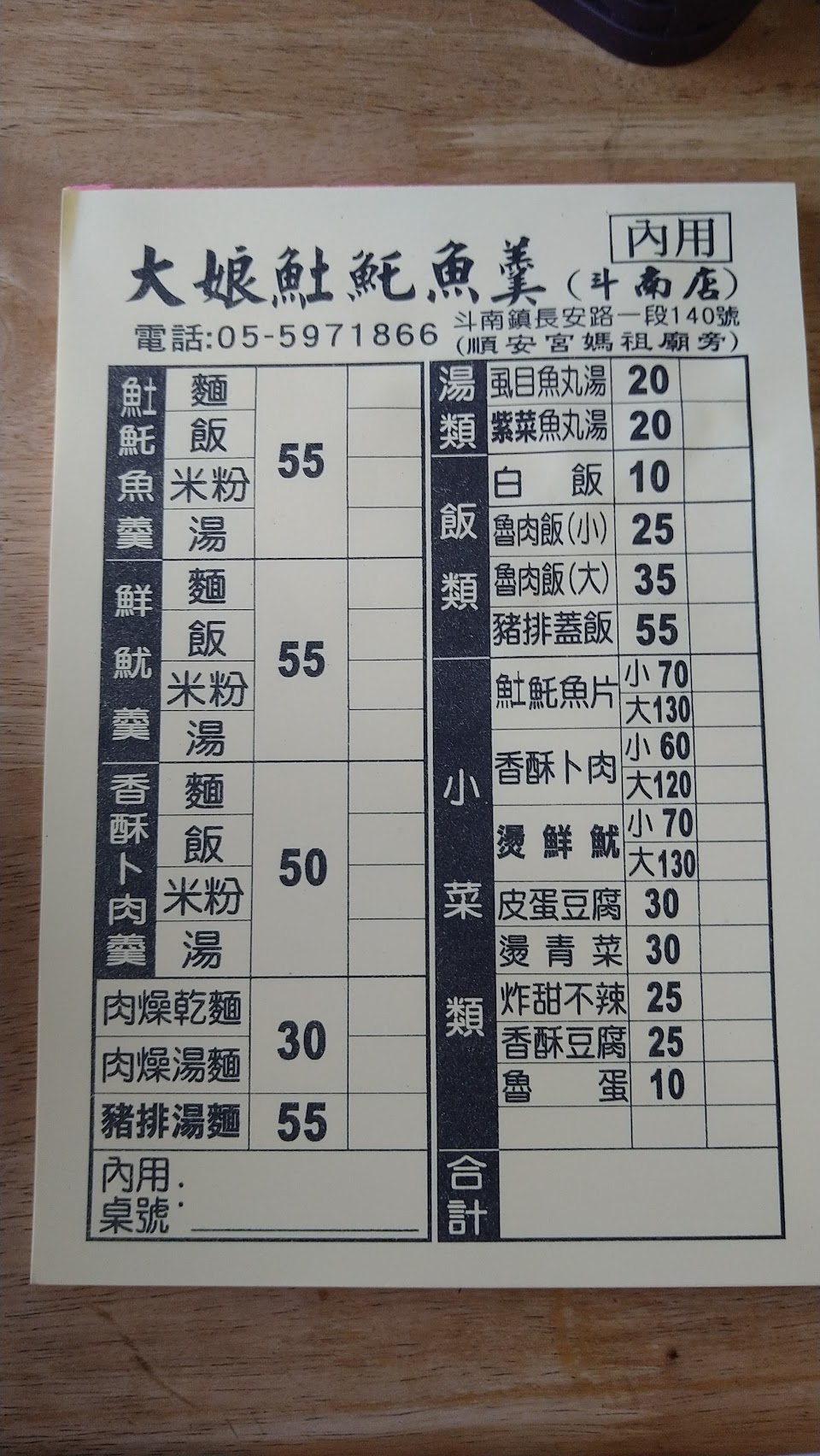 2024最新在地推薦餐廳的菜單_(廖)大娘土魠魚羹 斗南店的菜單、圖片