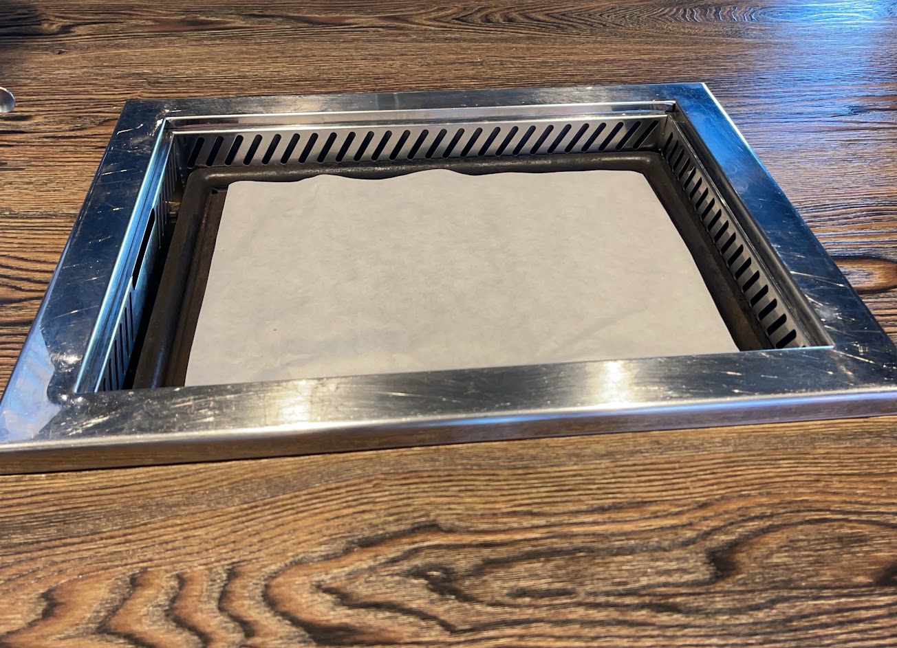 烤盤不能濾油,所有的食物在上面烤都油到不行,醃製肉品部份太鹹,很可惜