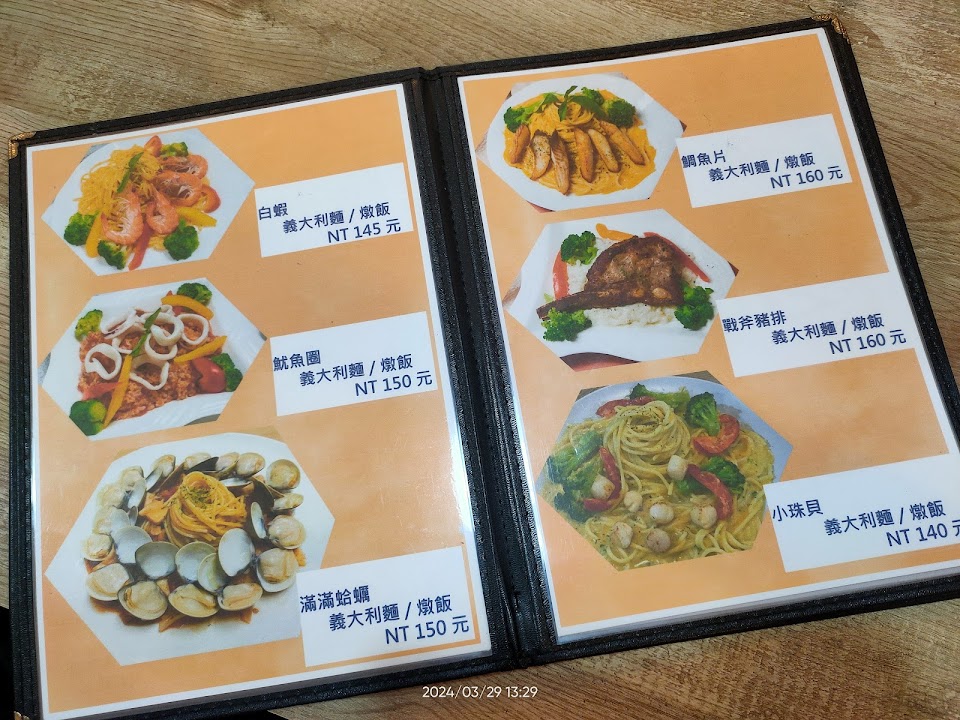 位在菜市場外圍,店面不起眼,但餐點了不起,每一份餐都是客製化,點個海陸大餐青醬義大利麵200元有找,還付紅茶喝到飽,大大推薦、