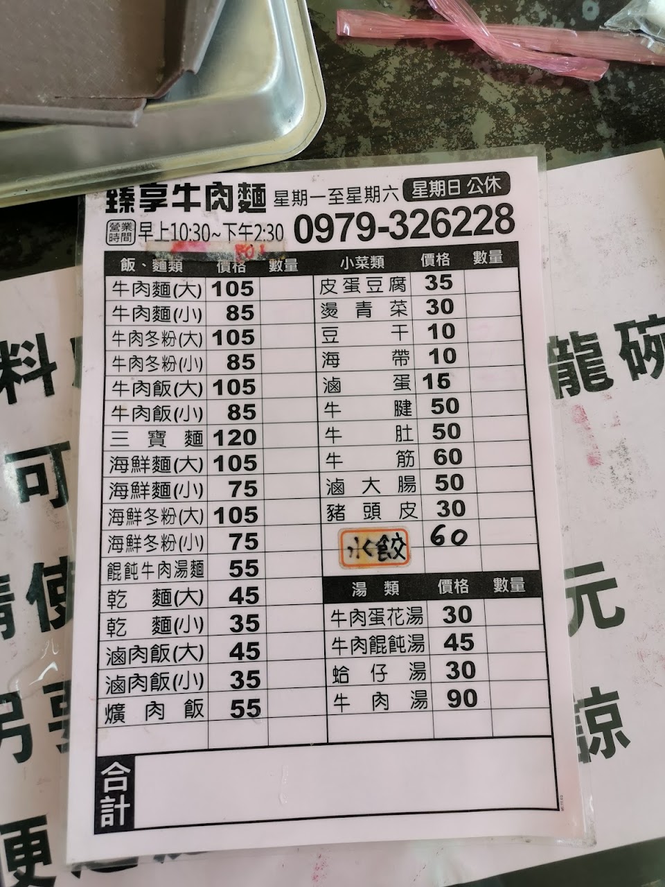 小菜平價,燙青菜可加蒜泥,牛腱牛筋都滷得入味。