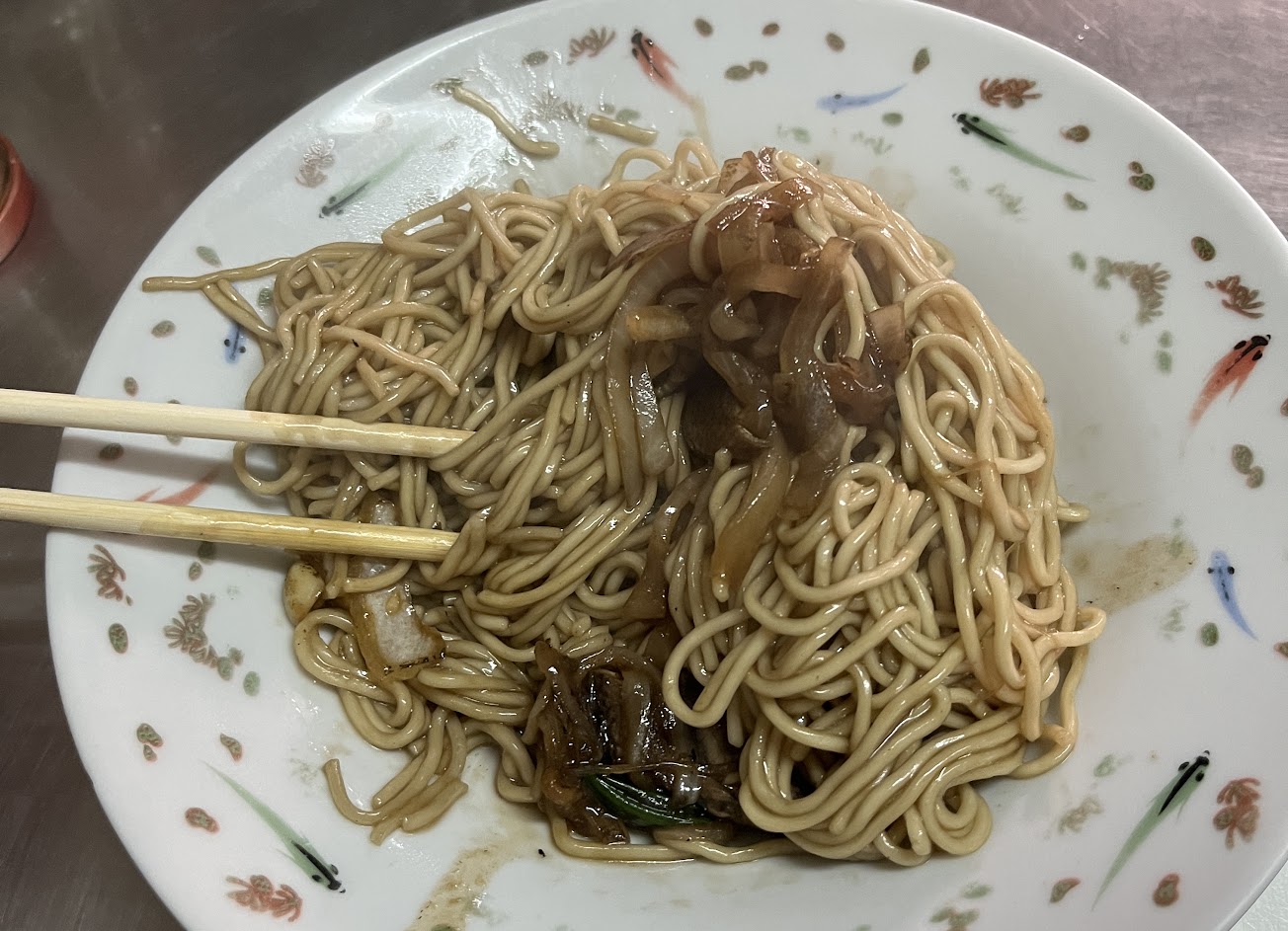 炒的鱔魚意麵: 洋蔥爆香味滲入麵裡