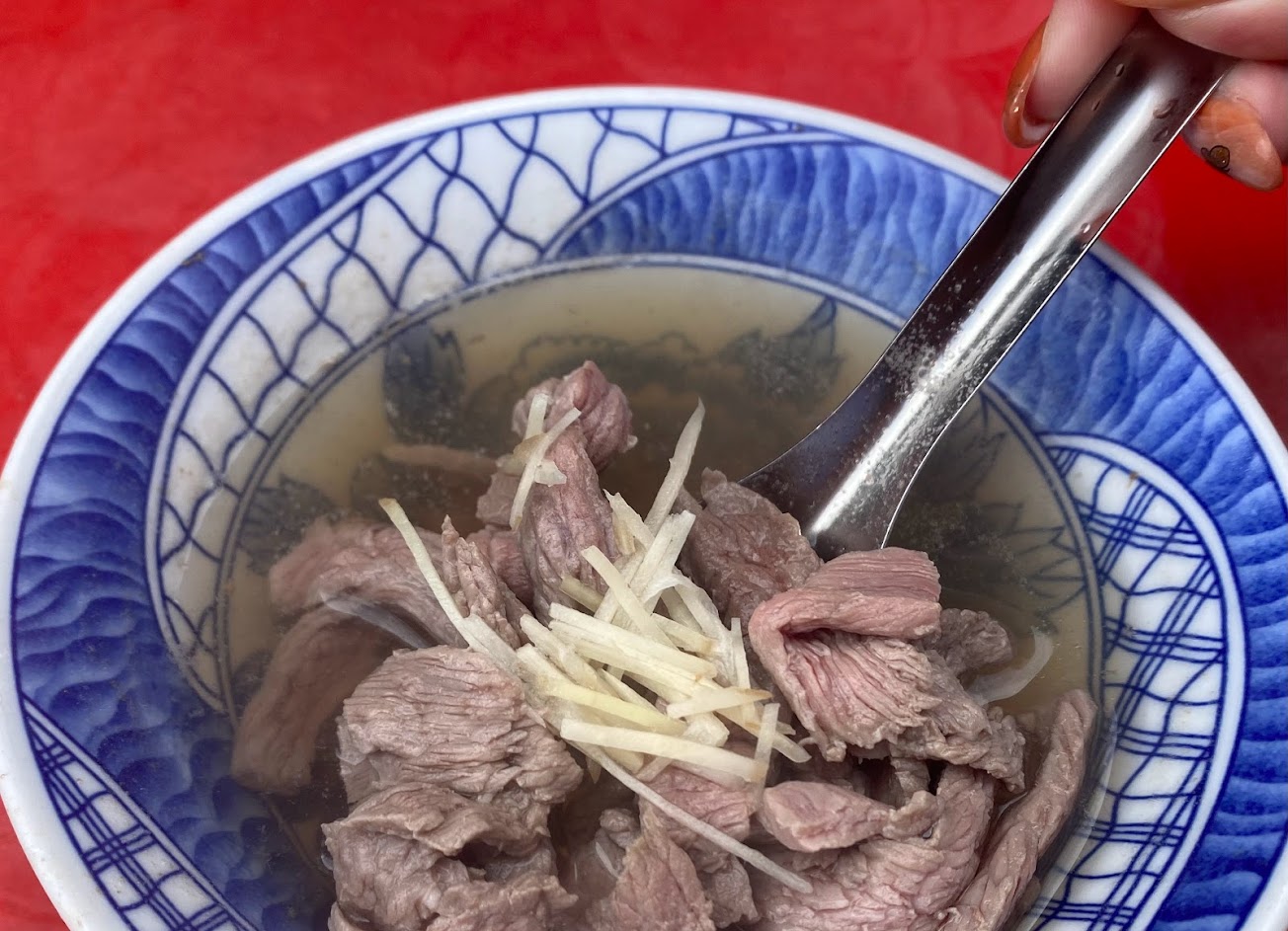 這裡的牛肉湯有別於台南的,台南的湯沒有加薑絲,薑味不會很重,反而現沖牛肉那個血水會甜,這裡的牛肉湯薑味比較重…這裡選擇也不多,吃完還可以留肚子去吃其他東西…