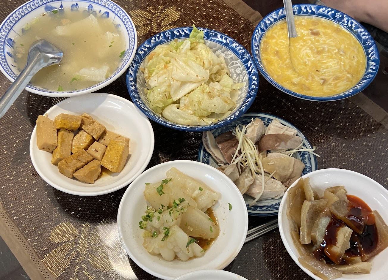 建議要點他的特色小菜,有像滷豆腐但其實是滷蛋白,還有滷豬皮跟豬皮湯,吃起來不會油膩,很傳統的道地滋味。