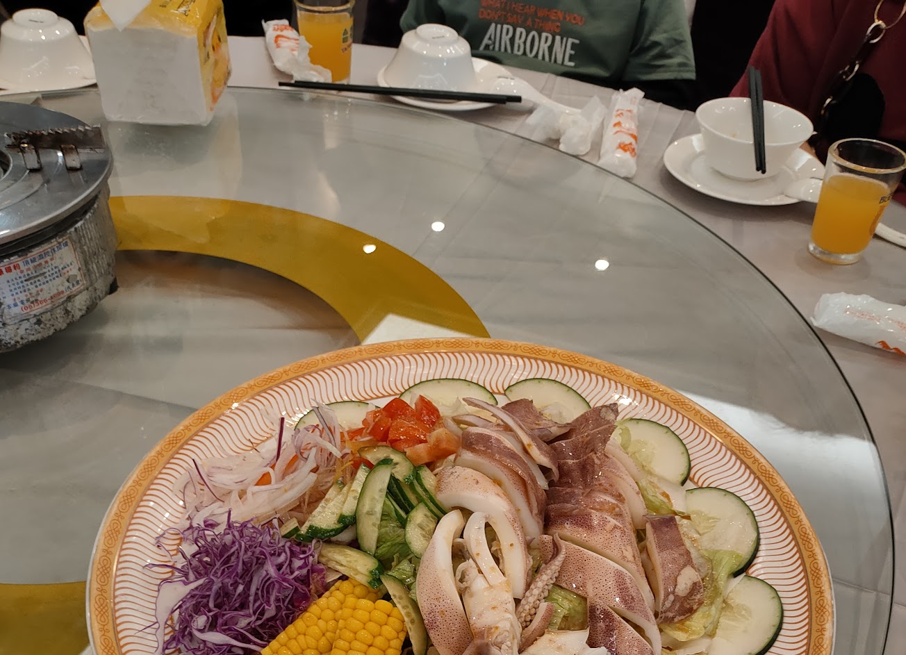 過年桌菜,12人坐包廂內用,雖年節期間只有一款固定菜色(7菜1湯加甜點、布丁),但海產鮮甜,每道菜都好吃,調味適中不過鹹也不油膩,而且份量足,我們12個人用餐綽綽有餘。