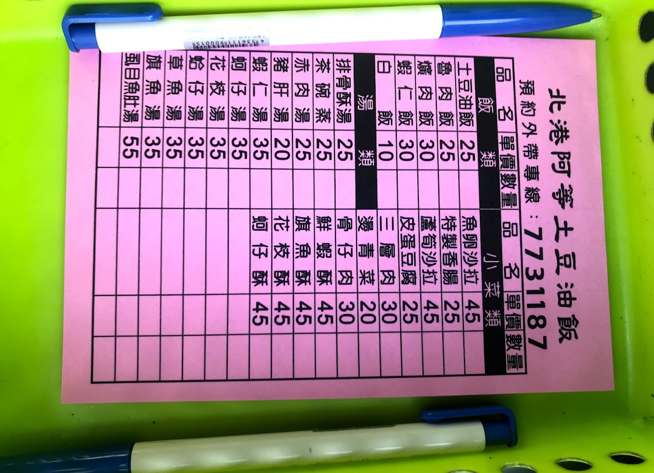 土豆油飯好吃,還有炸蚵仔酥,香腸等 湯品種類也多樣 油飯25元燙青菜20元 炸物45元 在地人超推