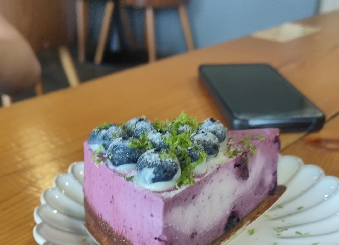 非常悠閒的午後時光,來一杯抹茶拿鐵🍵和藍莓生乳酪蛋糕🍰,非常舒服😌環境清幽,適合約會小聚的地方 …