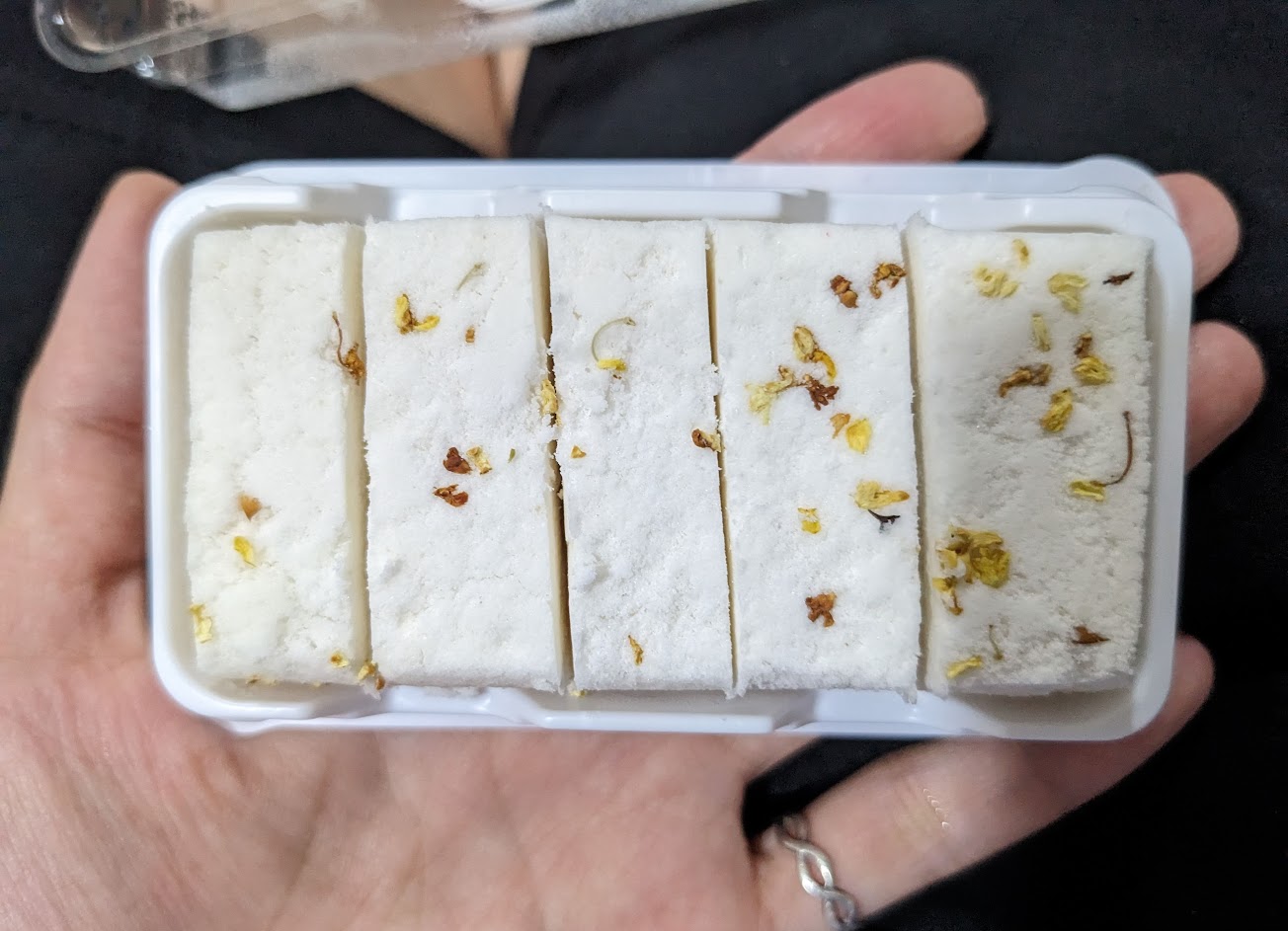 這個漂亮的桂花糕包裝吸引了我們去買,但遇到一個短頭髮有年紀的看似老闆娘態度極差,一點親和力都沒有,完全不會想再二訪!