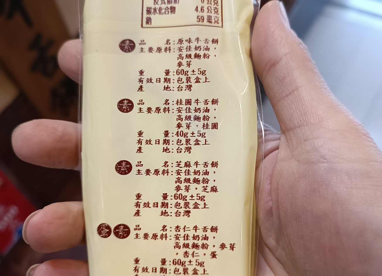 買回來的跟試吃的有落差 尤其是杏仁牛舌餅 乾又硬