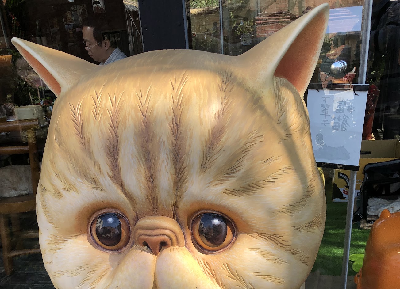 在巷弄就可以看到可愛貓腳印的指引 跟巨大的加菲貓裝置藝術
