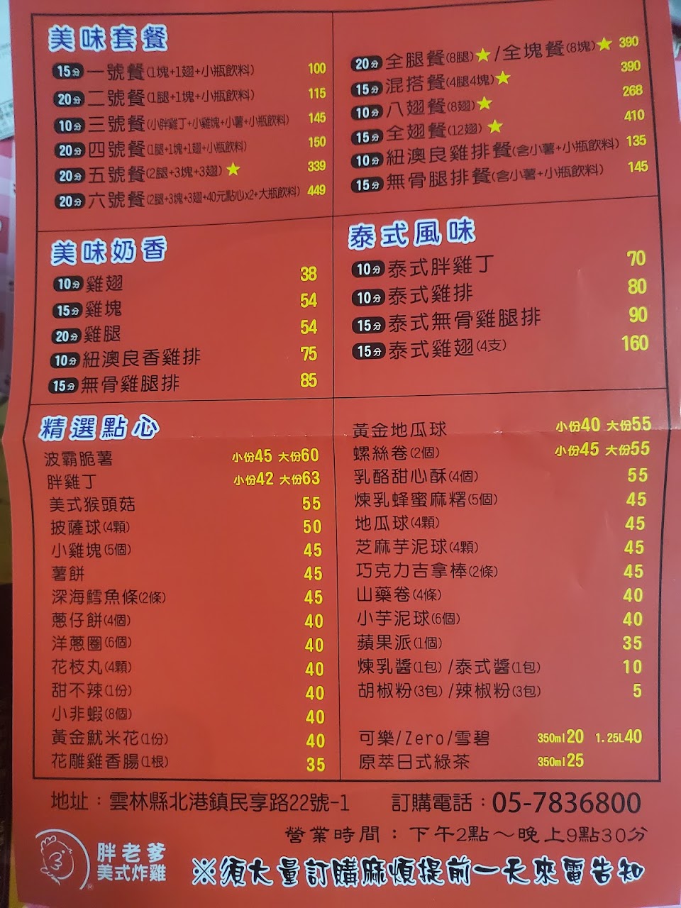2024最新在地推薦餐廳的菜單_胖老爹美式炸雞 北港店的菜單、圖片