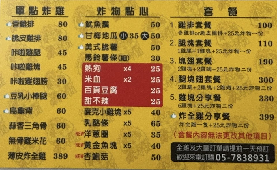 2024最新在地推薦餐廳的菜單_焱炸雞北港店的菜單、圖片