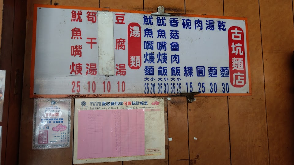 ???這間店位於雲林古坑中山路(嘉興宮廟的旁邊),??豆腐湯的湯頭非常好喝喔!乾麵Q而不爛,好吃。肉圓也非常好吃?下午有賣小菜:魯蛋、?豆乾、?海帶和其它的食物也都非常好吃呦!?老闆娘人非常好喔!?????????? …