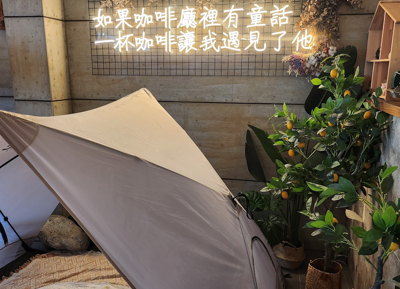 二樓室外座位蠻涼的,整體露營風,有網美拍照帳蓬跟小動物