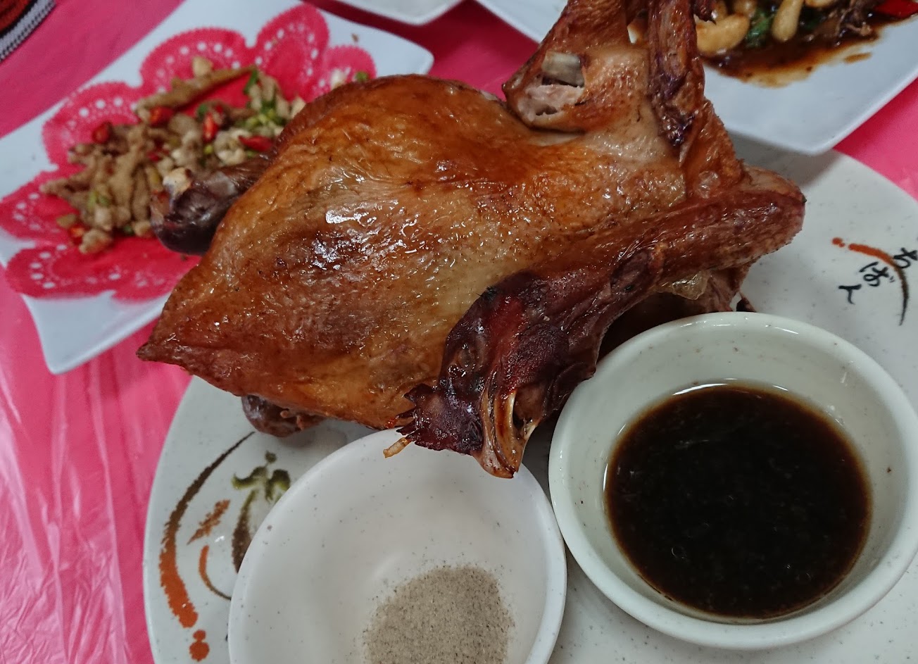 菜單寫的很草率,青菜類看不出來是什麼菜,重頭戲烤雞很普通,烤的有點過老,出餐速度快,但卻因為管理不太好造成出餐速度慢