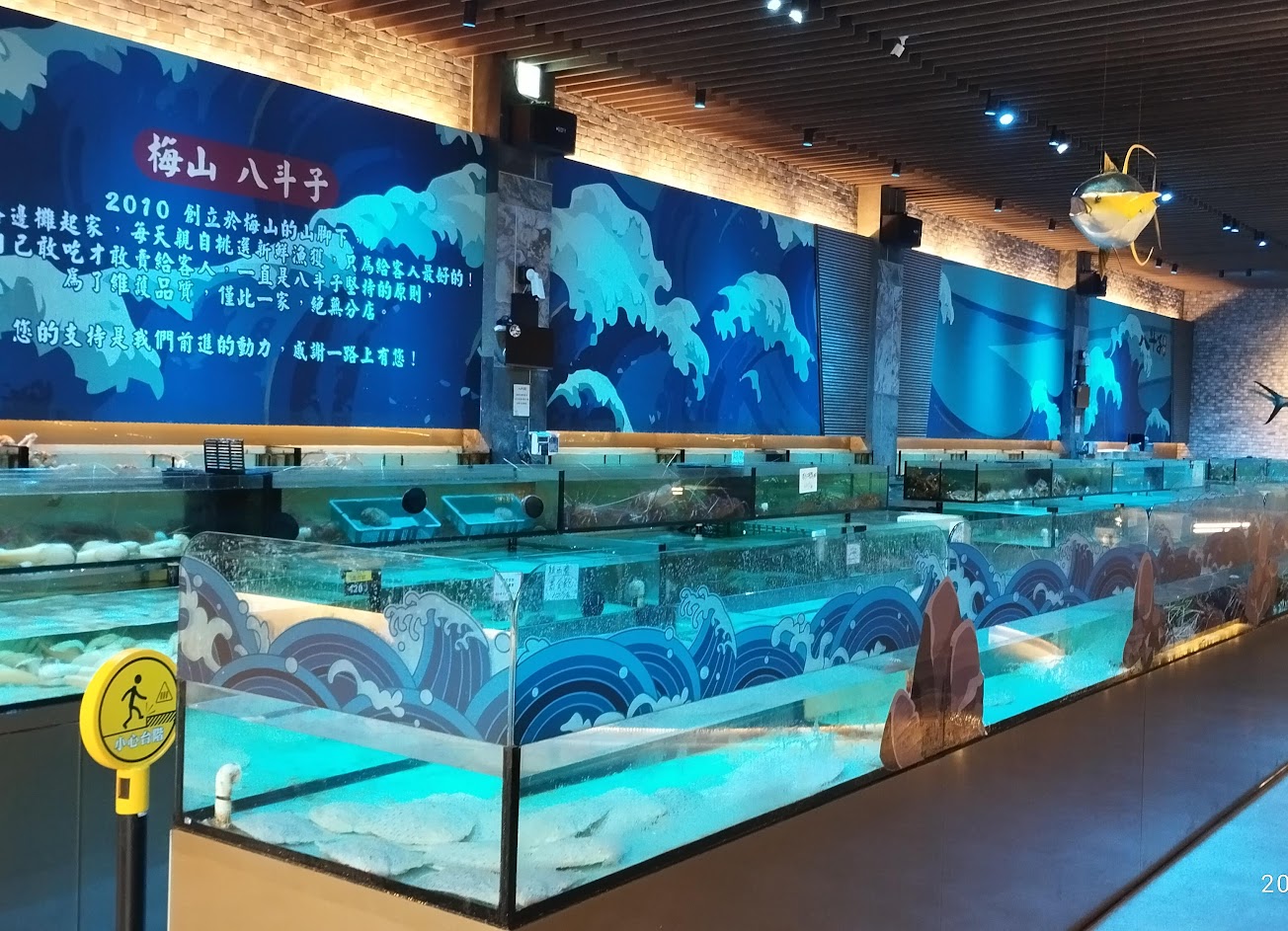 好幾排活海鮮魚缸隨你挑選阿~