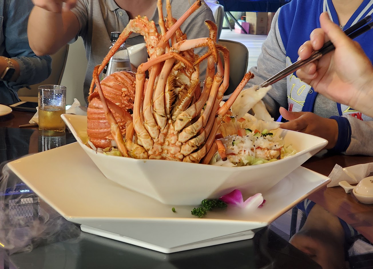 這個規模的海鮮餐廳在台灣應該很少,餐廳裡有小型水族箱,裡面的魚都顧得很漂亮,旁邊一堆活海鮮可以指定現撈,許多高級海鮮都有,這次點了帝王蟹做三吃,雖然貴,但真的很好吃,很新鮮,小卷米粉也很推,生魚片也切得很大塊,其餘的菜也都好吃,8個人吃的超飽的,生意非常好,建議要訂位