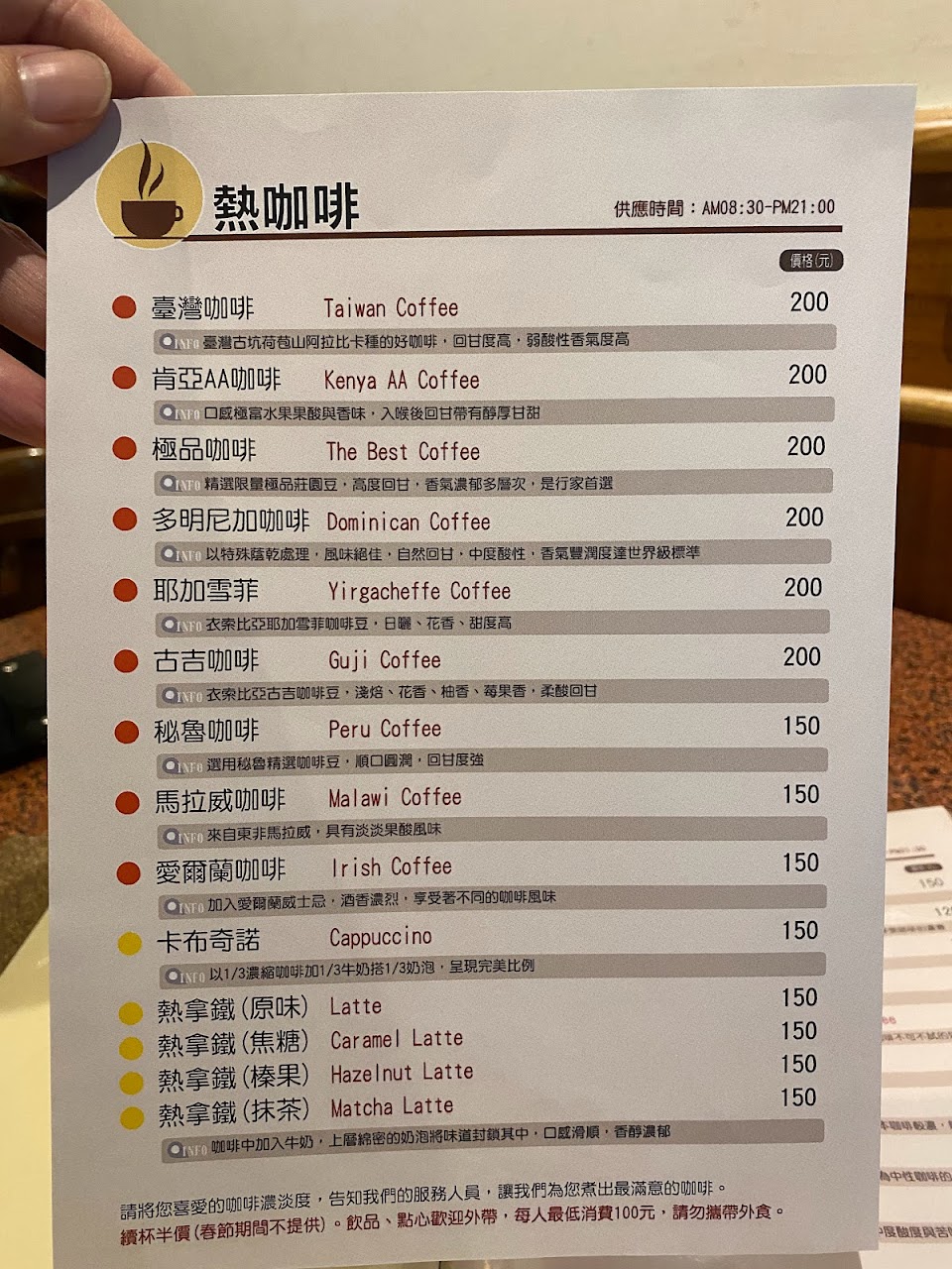 老闆人很親切,還甜心推介咖啡因比較低的咖啡給孕婦☺️??
