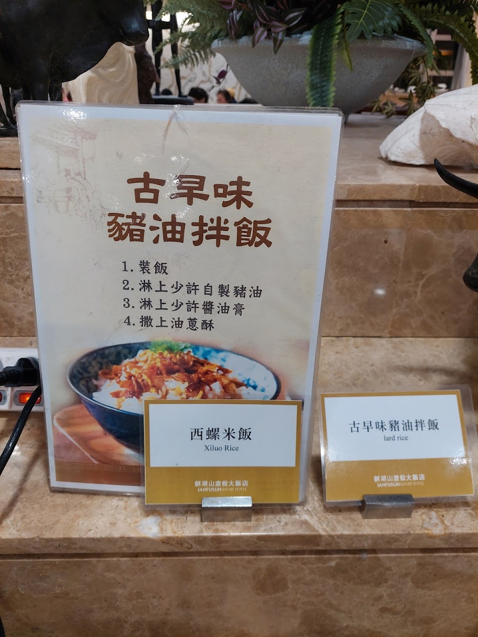 杏仁茶油條、豬油拌飯、牛肉湯、筍
